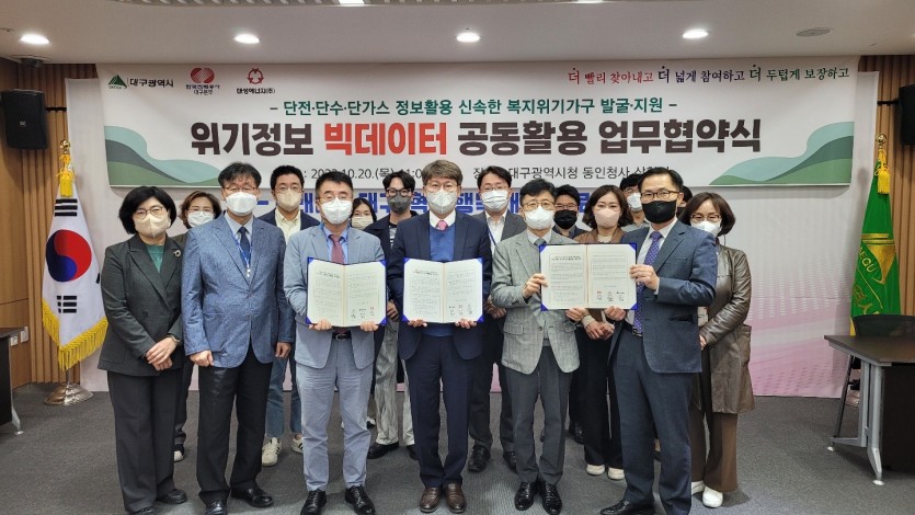 대구시는 복지 위기가구를 신속히 발굴 지원키 위해 단전·단수·단가스 등 위기 정보를 신속히 공유하는 ‘위기정보 빅데이터 공동활용 업무 협약식’을 개최했다고 20일 밝혔다.